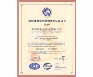 职业健康安全管理体系认证证书