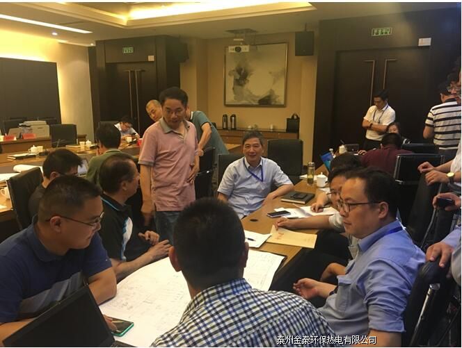会议选举产生了以江苏省电力设计院专家张劲松为组长的评审组,并由设计单位详细汇报了扩建项目初步设计的主要内容。随后,评审组分专业针对初步设计内容展开了深入、细致地讨论,各组成员从汽机、锅炉、电气、综合等专业入手,从安全、环保、经济多维度分析,综合考虑成本、效益等,对初步设计内容提出了许多中肯的建议:给水母管采用等压差控制,降低给水母管压力从而节约能源;增加一台拖动异步发电机或除氧器采用滑压运行方式来减少蒸汽节流损失,提升除氧器出水温度;低负荷工况下,二级高加增加中压汽源或采用#0高加设计来提升给水温度;风机变速方式的合理调整等。每一次的修改与完善都体现了公司对扩建项目的严谨与细致,是对金泰环保精益求精、追求卓越企业精神最完美的诠释。经过为期半天的研讨,形成了初步设计的最终方案,并获得建设单位、设计单位等各方的认可,这标志着初步设计审查工作的圆满完成。