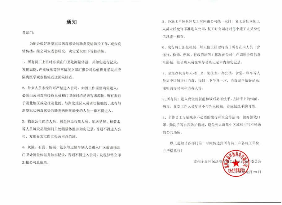 “疫”日不除、“疫”日不懈;胸怀必胜之心、汇聚磅礴之力—金泰热电在行动