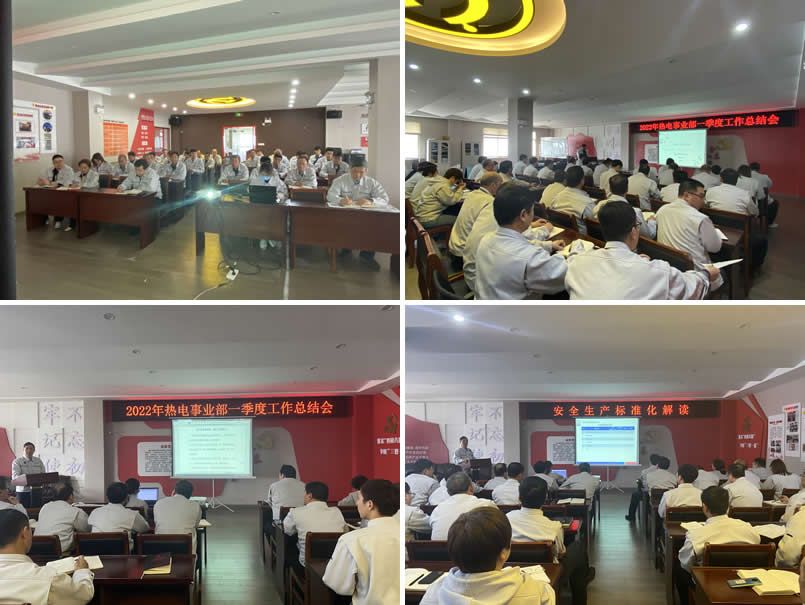 2022年4月16日,热电事业部召开一季度工作总结会暨安全生产标准化解读会,集团各部门、热电事业部专工、值长等各级管理人员共计40余人参加了本次会议。