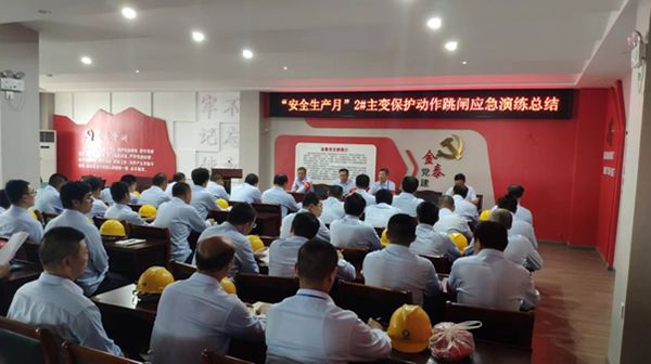 为了宣传贯彻《安全生产法》,同时学习徐振华总经理“学习新安法,做好第一责任人”的安全理念,增强公司员工的责任意识,加深安全观念,体现“安全第一,预防为主,综合治理”的安全方针。提高企业职工应对突发事件的应变处置能力,对照公司安全月活动方案。在2022年 6月28日上午,江南在线举行了“2#主变保护动作跳闸大型反事故演习”活动。