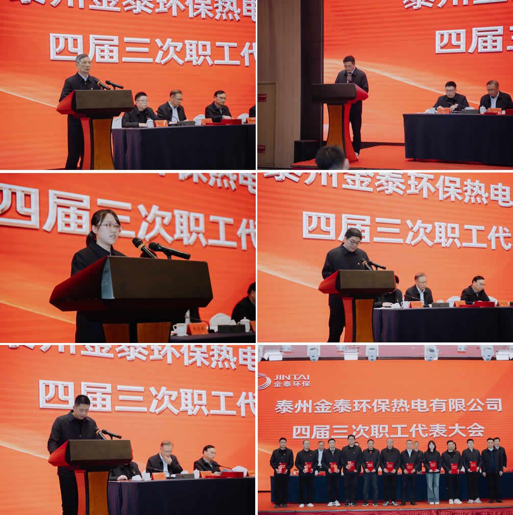 第四届职工代表大会第三次会议在激情而庄严的国歌声中正式拉开序幕。集团执行总经理徐振华从生产经营业绩、年度安全目标完成情况、主要负责人履职情况等向大会汇报2024年度安全生产工作情况,并对2025年进行工作部署。徐总提出,2025年是“三年规划目标”的关键年,更是公司高质量可持续发展的“攻坚年”。我们要以《金泰忠诚准则》为指引,攻坚重点工作,抓好安全保供、关注人才梯队建设、紧抓科技创新、服务用户、提升精神面貌这六个着力点,助力金泰公司在2025年再上新的台阶,为2026年三年愿景的收获之年夯实基础。集团副总经理王顺安宣布了2024年度各事业部、集团各部门、下属子公司先进部门、先进员工的名单,主席团成员逐一为大家颁发了荣誉证书。职代会上,先进代表们的发言振奋人心、热血沸腾,让大家感同身受、备受鼓舞。热电事业部执行总经理季佩生、建材子公司总经理张伟和鼎信子公司董事长周叶年分别向集团公司董事长递交2025年经营目标责任状、审计责任书。